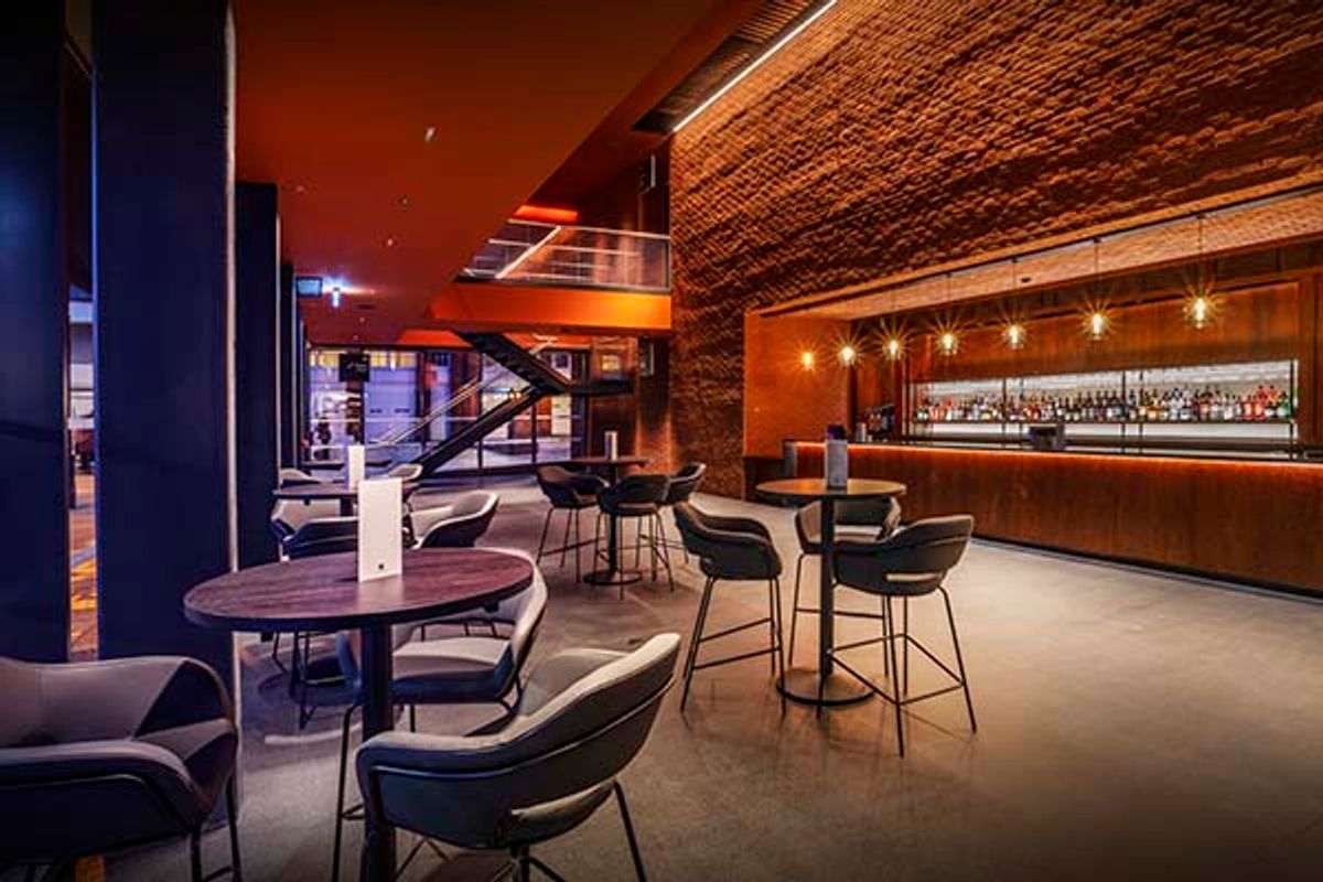 With comfortable low-level seating and tables, poseur tables with stools and floor to ceiling views across the cultural quarter, the downstairs Foyer Bar and upper level Mezzanine are impressive and flexible locations.