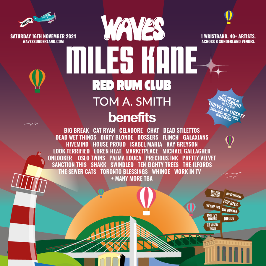 Sunderland’s Waves Festival is set to make a triumphant return on Saturday 16th November, with the line-up now announced including headliners Miles Kane (one man band), Red Rum Club, Tom A. Smith & benefits.